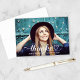 Modern and girly custom flat graduation thank you note cards feature a photo with white (can be modified) Thanks script text with a cute heart accent. Personalize with a picture of the graduate, her name, and class year. Includes space on the back of the card for a handwritten note.