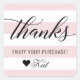 Thank you stickers feature clean white horizontal stripes with black colored "Thanks" script text and sleek custom text that can be personalized with a custom message and name. Perfect to accent your sales. The pastel ballet pink background color can be customized.