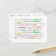 We love the design on the postcard. The card was a nice thickness. I recommend Matt over Semi-gloss for this design. It also lets you add text to the back. With a 50% promotion, this was very reasonable. In addition, you save on the cost of the envelope and postage for postcards. The print was beautiful. I recommend matt finish for this design
