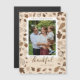 This Thanksgiving card features the word 'thankful' in modern text, accompanied by illustrations of pumpkins, acorns, and fall leaves. This personalized photo card lets you share a favorite gratitude moment with loved ones and friends.