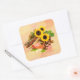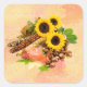Square sticker with an image of things Thanksgiving, like ears of Indian corn, large yellow sunflowers, chestnuts, autumn leaves, and an orange votive candle on yellow and orange grunge. See matching custom-cut vinyl sticker, greeting card, label and confetti. See the entire Thanksgiving Sticker collection under the CARDS & STICKERS category in the HOLIDAYS section.