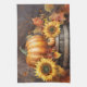 For the fall, also makes a great hostess gift. A thanksgiving time theme, with sunflowers, harvest pumpkins and fall or autumn colored leaves and foliage all on a country barrel. Great kitchen gifts.