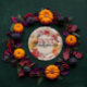 Personalized Thanksgiving paper plate design featuring a fall wreath with assorted foliage and berries. The text is fully customizable. To change it use the Personalize option. For more changes, such as changes to the font, font color or text layout, use the Edit design tool option.
