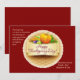 Send your Thanksgiving holiday wishes with this Basket Weave design. It features a center basket weave medallion with vegetables of the season and a "Happy Thanksgiving Day" message.