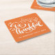 Be Thankful Script Harvest Orange Thanksgiving Square Paper Coaster