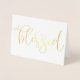 Gold foil lettering simply says, "Blessed", Can be used for many occasions! Change the type of paper on the card or the envelope.
