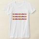 My overall review is that the T-shirt is nice, it fits true to size however the font is significantly smaller than advertised and you can't read it. The printing is unreadable and there is a strain to read it. It does not look like the advertised product. Maybe the shirt color is darker or a larger more visible font should have been used. Photos with and without flash and font is barely legible.