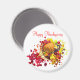 Magnet with my bright design of a Thanksgiving cornucopia of fruit and vegetables. Customizable text says "Happy Thanksgiving".