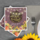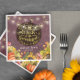 Thanksgiving Dinner Party Paper Napkin Templates - Elegant "Eat Drink and Be Thankful" Faux Gold Foil Script, Autumn Maple Leaves, Pumpkins, Sunflower and String Lights.