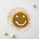 Whipped cream face on a pumpkin pie with autumn leaf background and burlap for Thanksgiving dinner.