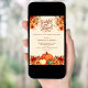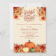 A soft beige background. Decorated with pumpkins and orange and yellow flowers. Personalize and add the party details.