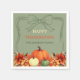 Thanksgiving dinner pumpkin bow muted moss green napkins