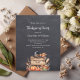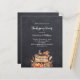 A faux rustic chalkboard as background. Decorated with pumpkins, kitchen utensils, a rustic wooden sign with the text: Thanksgiving Feast. Personalize and add the party details.