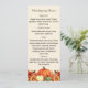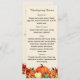 Cream colored background decorated with orange fall flowers and pumpkins. Personalize and add your Thanksgiving menu on the front.