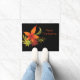 Doormat shown with a black background with a festive autumn fall leaves print.