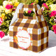 Happy Thanksgiving Favor Box with brown and white plaid pattern, watercolor pumpkin wreath.