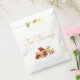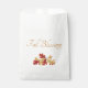 Rustic Autumn favor bag, with a red and gold fall leaves design on a white background. With elegant gold script typography lettering, you can add your own information. Great for saying thank you to your guests at your Thanksgiving or harvest dinner celebration.