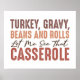 This fun and festive Thanksgiving design features the playful phrase "Turkey, Gravy, Beans and Rolls, Let Me See That Casserole" in a bold, eye-catching layout. The text is arranged in a mix of blocky, distressed fonts and elegant script, creating a dynamic and engaging visual effect. The color palette includes warm, earthy tones like browns, oranges, and reds, perfectly reflecting the cozy and comforting atmosphere of a Thanksgiving feast. The distressed texture of the text adds a rustic, vintage feel to the design, making it ideal for the holiday.