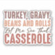 This fun and festive Thanksgiving design features the playful phrase "Turkey, Gravy, Beans and Rolls, Let Me See That Casserole" in a bold, eye-catching layout. The text is arranged in a mix of blocky, distressed fonts and elegant script, creating a dynamic and engaging visual effect. The color palette includes warm, earthy tones like browns, oranges, and reds, perfectly reflecting the cozy and comforting atmosphere of a Thanksgiving feast. The distressed texture of the text adds a rustic, vintage feel to the design, making it ideal for the holiday.
