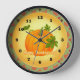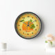 The size of the clock is dramatic and the abstract alcohol ink design is soothing and intricate at the same time. I chose the black frame that adds pop to the blue and gold design. The gold printing would be better in a slightly darker or larger font. I love it and I’m looking for just the right place in ny new apartment. I would recommend this clock for a personal gift or a present. I feel that the quality is excellent for the money! I’m a bit of a clock nut so I’m pretty particular about my purchases. The clock is larger in diameter than many if the clocks I have, so it stands out very well. I think a slightly darker printing color and a moderately larger size would best suit a professional decor or add more impact in a work place item.