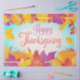 Paper Placemat Happy Thanksgiving Holiday Fall Maple Leaves, RETRO Blue wood pattern. Fall Season Romantic Decorative Collection, Trendy Design ornamental Paper Placemat with Pumpkin, Autumn red, yellow, orange maple leaves, gold foliage, on Retro wood Rustic background. Happy Thanksgiving Calligraphy lettering. Crafts & Party Supplies > Gift Wrapping Supplies > Tissue Paper Gifts and Presents Trendy Autumn Holiday Design Thanksgiving Party Decoration.