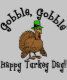 Thanksgiving design with the funny saying "Gobble, gobble" and "Happy Turkey Day" Make this Thanksgiving Day a little brighter with this cute yet funny design! Happy Thanksgiving!