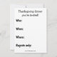 Yes, you can print on the back of your invitation for free! Most designs already have a corresponding design on the back that can be personalized using the Design Tool and going to Layers. This is a great way to communicate more information or further personalize your Thanksgiving Humor Dinner Party Invitations. The option is really up to you.