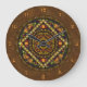 This elegant mandala features layers of Native American inspired patterns and more modern Thanksgiving icons, like turkeys, cornucopias, and leaves, in shades of orange, yellow, and red for autumn.
