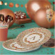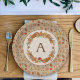 Colorful autumn leaves scattered with acorns and mushrooms. The perfect botanical design for your Thanksgiving table. The soft shades of brown, gold, terracotta, rust, peach, red, and tea green coordinate with almost any décor.