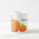 Coffee mug shown with a Thanksgiving pumpkins print. Give Thanks.