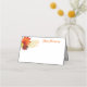 This folded name place card is shown in basic white with a Thanksgiving autumn fall leaves graphic print.