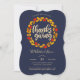 Thanksgiving Navy Autumn Leaves Wreath Invitation