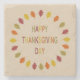 This awesome Stone Coaster features a digital art image of a series of Oak leaves in shades of red, orange, yellow and green arranged in a circle around some text with alternating letters of red, yellow, orange and green that says Happy Thanksgiving Day.