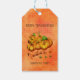 Modern pumpkins and green glitter stars with text autumn over orange texture background