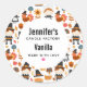 Soap or candle scent stickers with a seasonal Thanksgiving pattern. Featuring whimsical pilgrims, turkeys, pumpkin pie and other various autumn themed elements.