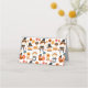Place cards with a seasonal Thanksgiving pattern. Featuring whimsical pilgrims, turkeys, pumpkin pie and other various autumn themed elements.