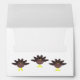 This envelope features a cartoon of a turkey with big black eyes, a small yellow beak and tail feathers sticking up. The feet are facing in opposite directions making the turkey look goofy. The turkey has pink text on its’ belly that says “Happy Thanksgiving” and it looks like the feathers have been plucked out to reveal the message. There is customizable text on the back so you can personalize it. There is room on the front to affix postage. This envelope will hold any A7 sized greeting card. .