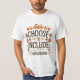 This Thanksgiving-themed t-shirt features the empowering phrase "Choose to Include" surrounded by warm autumn colors, pumpkins, and falling leaves. Perfect for holiday gatherings, this design emphasizes unity, gratitude, and inclusion. Whether for Thanksgiving dinner or spreading positive vibes throughout the season, this tee is a heartwarming choice for those who value togetherness and celebration.