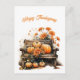 Thanksgiving Pumpkins Rustic Bench Illustration Holiday Postcard