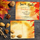 This early Thanksgiving dinner save the date invitation features fall leaves along the left border on the front with a similar design on the back. Personalize the text in the template fields on the front and back or click customize to select a font style, size, and color you prefer.