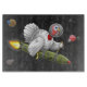 A fun and sweet Thanksgiving Cutting Board where the Turkey has escaped from Thanksgiving and is traveling through the universe with the help of his rocket.