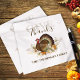 This design features thanksgiving fall autumn harvest turkey, thanksgiving dinner party table décor, an elegant watercolor nature rustic, farmhouse farm country classic, traditional holiday nature family name, custom customize calligraphy script, a whimsical typography font text, modern family get together, a classic traditional paper party napkin, a classic thanksgiving turkey illustration