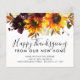 Budget Modern Autumn Fall Rustic Watercolor Floral Sunflower Peony Happy Thanksgiving We've Moved New Home Change of Address Holiday Moving Announcement