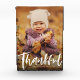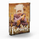 A bold white brush script "thankful" against your vertical photo makes a perfect Thanksgiving fall decor home item with this thankful script photo block. Also a great grandparent gift!