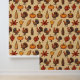 The wallpaper contains a warm Thanksgiving atmosphere. It consists of a repeating pattern of lovely turkey, pumpkins, autumn leaves, and more, harmoniously blends with the beige background. It is the perfect choice to create the autumn mood in your home, cafe, or store.