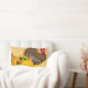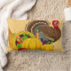 Thanksgiving throw pillow shown with a festive turkey print on a light golden background color.