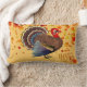 This throw pillow is shown with a autumn fall leaves and a Thanksgiving turkey print on a light golden color background.