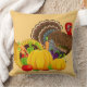 Thanksgiving throw pillow shown with a festive turkey print. Customize this pillow or buy as is.
