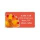 A bright return address label for the autumn season and Thanksgiving featuring a whimsical turkey with bright yellow, orange, and red feathers illustrated with watercolor on a warm red background. You can edit the background color and text to fit your needs.