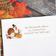Featuring playful turkeys in Pilgrim hats, surrounded by beautifully detailed pumpkins, vibrant autumn leaves, and delicate floral accents, this label brings a cozy, festive touch. The rich earthy tones of oranges, browns, and reds create a warm atmosphere, while swirling vines and soft green foliage add a whimsical flair.